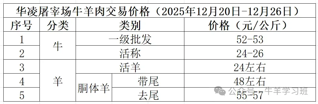 12月27日-1月3日牛市牛价: