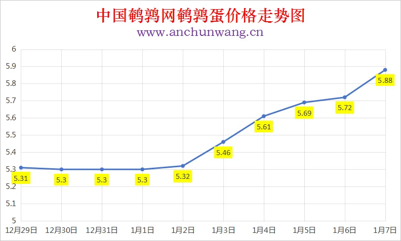 2026年1月7日全国鹌鹑蛋价格涨跌表:均价5.88元 大范围涨