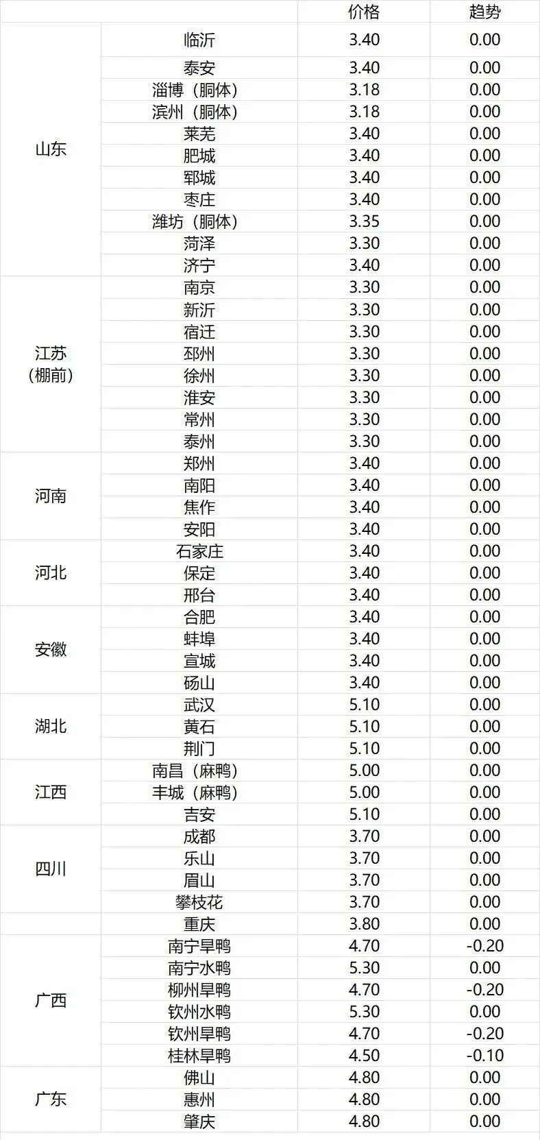 毛鸭价格走势