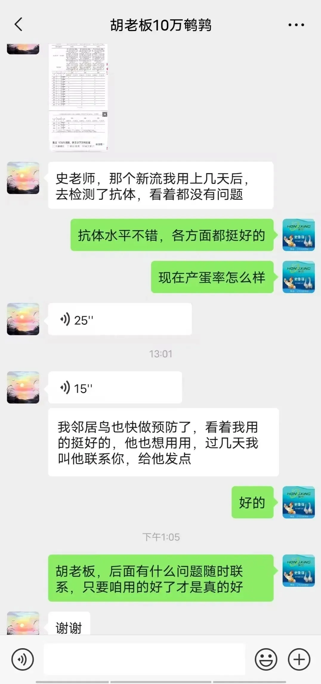 用完咱们饮水的新流疫苗以后,胡老板的反馈来了,去做完抗体检测以后非常满意,鹌鹑产蛋没有因为应激掉蛋,产蛋率也上去了,打算以后长期使用