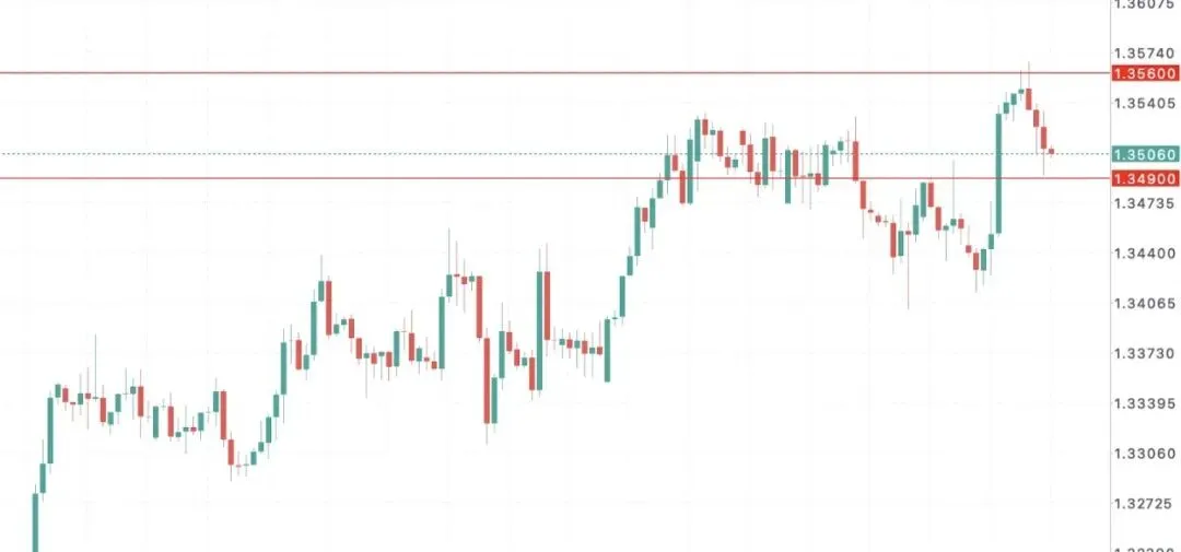 结合4小时价格结构观察,昨日低点1.3490已成为当前走势的首要关注支撑。若汇价能够守稳该水平,则短线仍具备再次上探1.3560阻力、进而挑战1.3600整数关口的潜力。反之,若失守1.3490,则意味着市场结构转弱,下行风险将相应增加,汇价可能进一步向1.3450乃至1.3400区域回调。整体来看,价格在1.3490-1.3560区间的突破表现,将决定其后续运行方向。