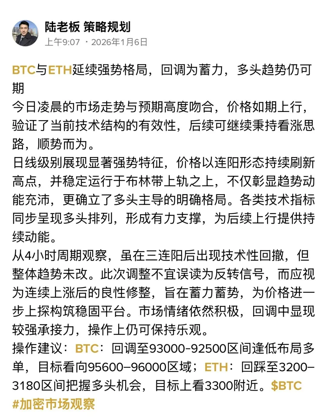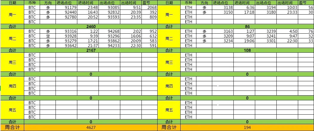 具体操作上,自94000上方起逐步分批布空,持仓至今,已于近期发出平仓提示,累计盈利超一千点。然而,对该结果尚不完全满意,略感差强人意——从早间持单至今,仅兑现千余点空间,与预期存在差距。据老陆初步判断,本轮目标本有望触及两千点以上。操作逻辑在于:日内白盘持续阴跌、高点下移,空头趋势清晰,即便晚盘出现小幅反弹,亦未改变整体格局。毕竟,正常上涨行情前往往需经历回调蓄力,走势符合预期。