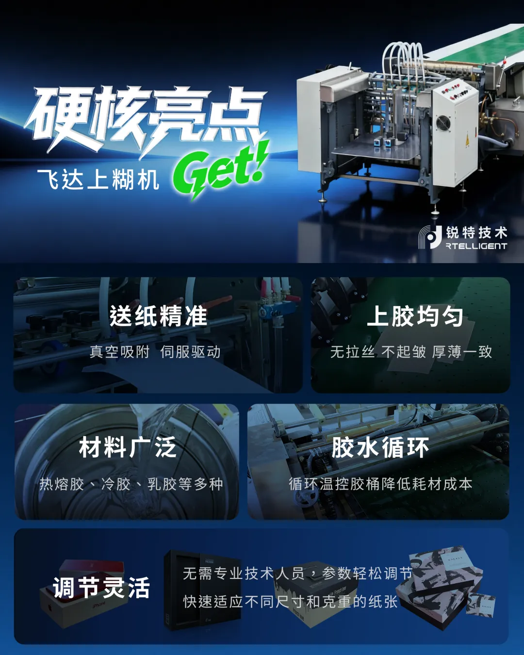 可适应热熔胶、冷胶、乳胶等多种胶水类型,满足不同生产需求