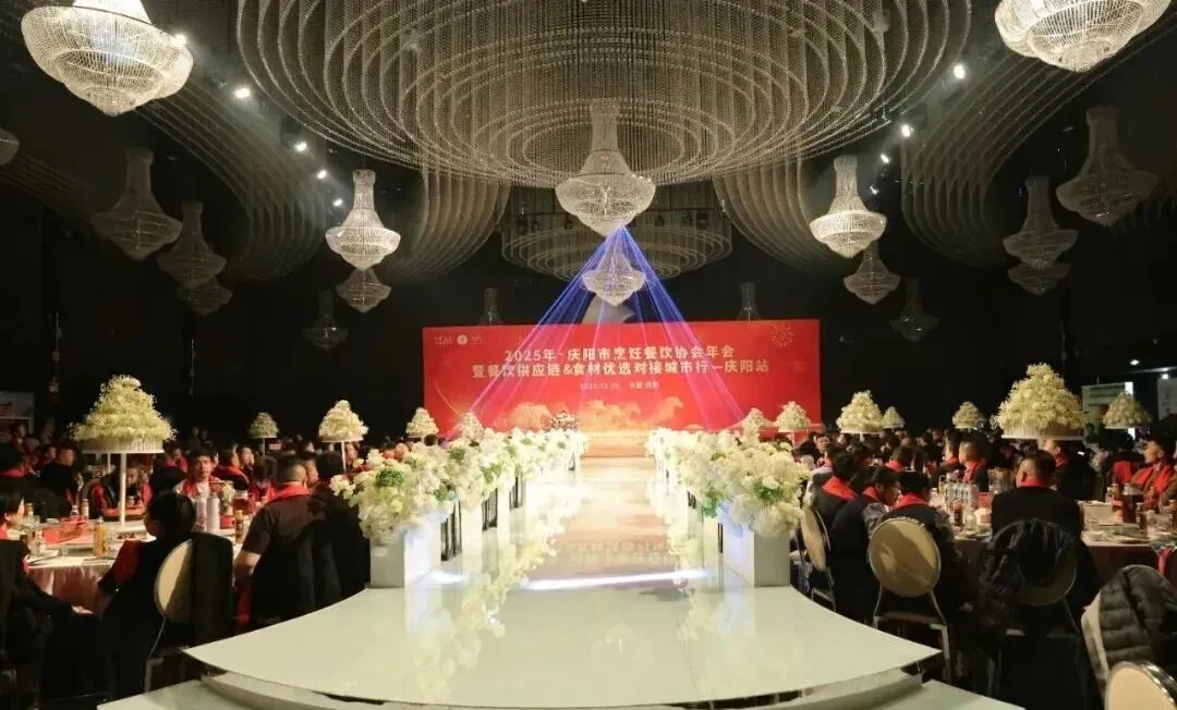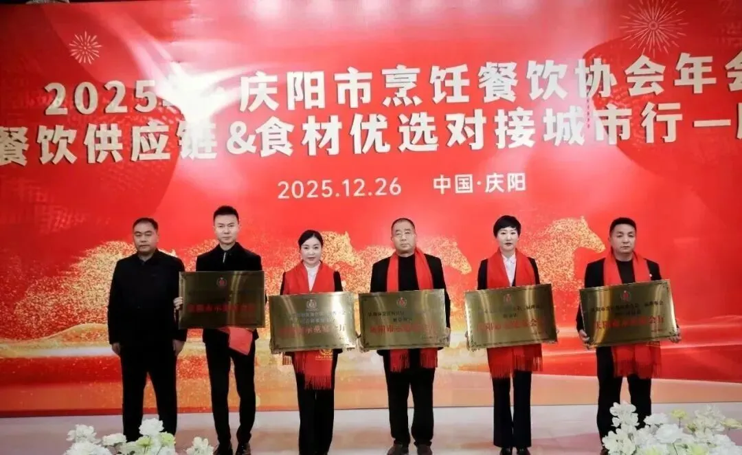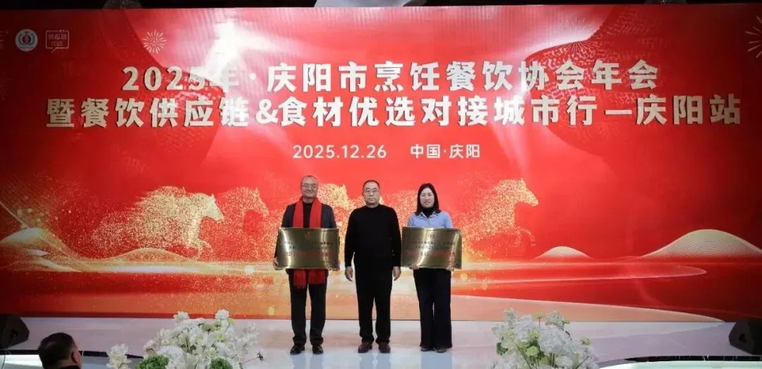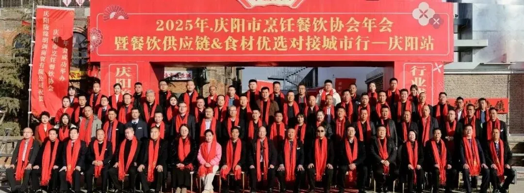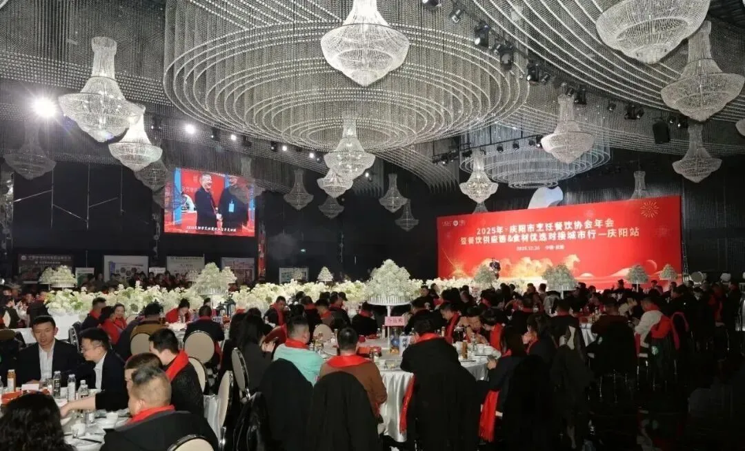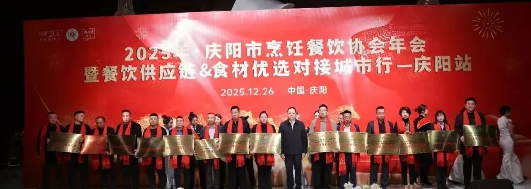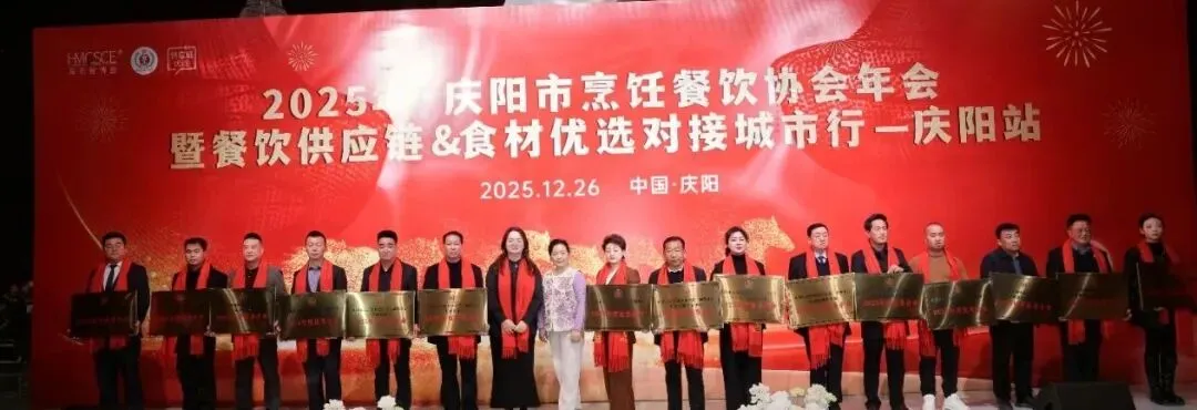 12月26日,庆阳市烹饪餐饮协会2025年年会在庆阳市西峰区欢颜聚・乡味大宴隆重举行。中国烹饪协会主席团副主席、甘肃省餐饮烹饪行业协会会长赵忠禄带领协会副会长兼秘书长周建娟、副会长张英、办公室主任张丽萍参加年会。庆阳市烹饪餐饮协会会长苏旺锋、庆阳宾馆有限责任公司党支部书记、总经理张小梅、副总经理孙均、鲁振东。庆阳市烹饪餐饮协会党组书记、副秘书长赵金龙、荣誉会长靳宝峰、胡冬红、秘书长靳海峰、监事长张春霖、常务副会长冯志贵等协会理事、副会长、会员、供应链合作商共400余人出席大会。
