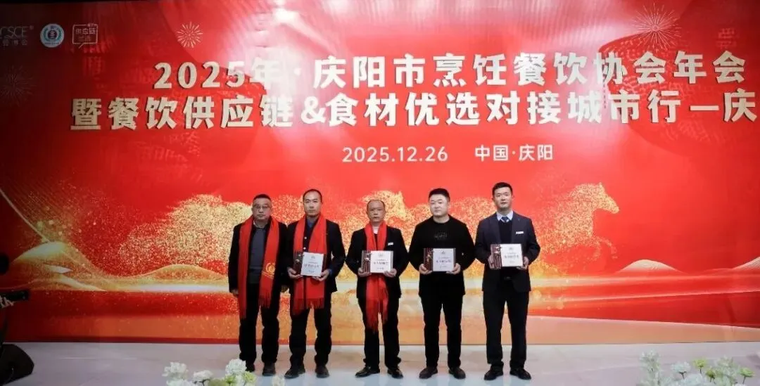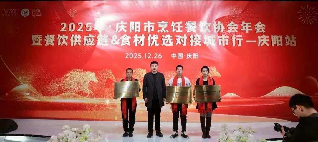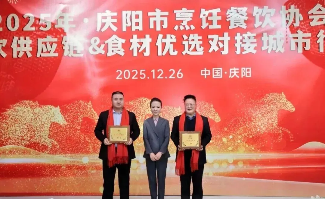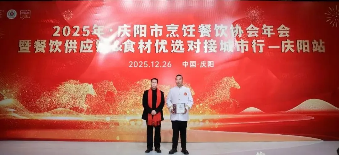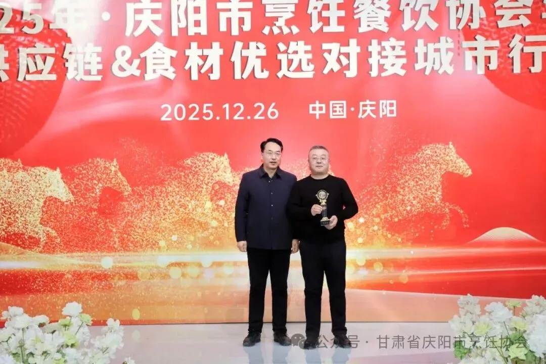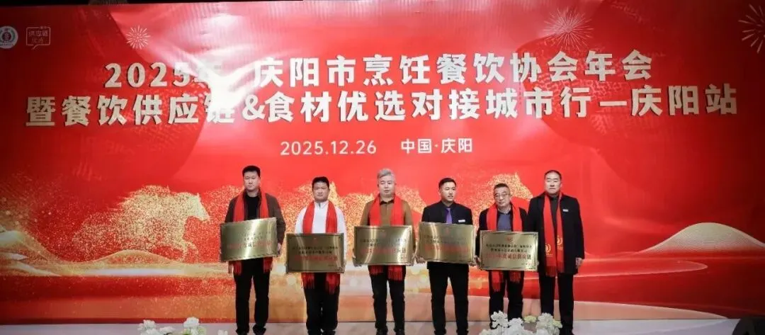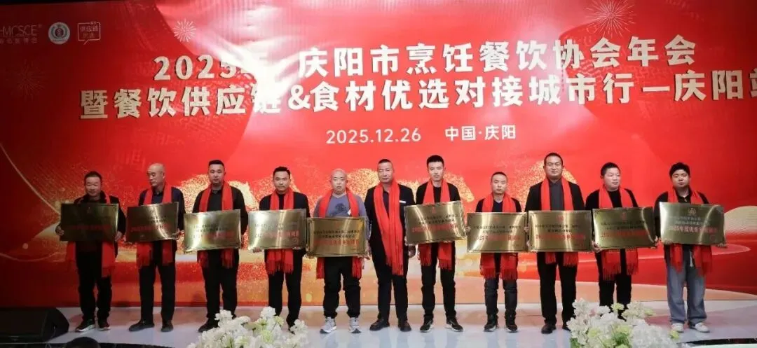 12月26日,庆阳市烹饪餐饮协会2025年年会在庆阳市西峰区欢颜聚・乡味大宴隆重举行。中国烹饪协会主席团副主席、甘肃省餐饮烹饪行业协会会长赵忠禄带领协会副会长兼秘书长周建娟、副会长张英、办公室主任张丽萍参加年会。庆阳市烹饪餐饮协会会长苏旺锋、庆阳宾馆有限责任公司党支部书记、总经理张小梅、副总经理孙均、鲁振东。庆阳市烹饪餐饮协会党组书记、副秘书长赵金龙、荣誉会长靳宝峰、胡冬红、秘书长靳海峰、监事长张春霖、常务副会长冯志贵等协会理事、副会长、会员、供应链合作商共400余人出席大会。