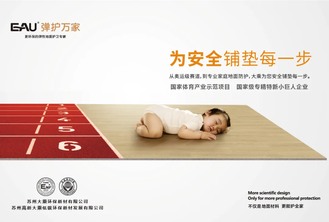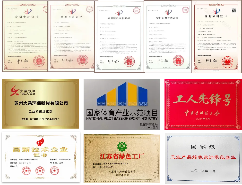 作为全球领先的水性运动地材制造商,大乘环保始将“弹护万家”理念刻入发展基因。从发明全球首条获得国际田联认证的全水性跑道,到斩获国家级专精特新“小巨人”企业、国家体育产业示范项目等多项重磅荣誉;从百余项授权专利的技术积淀,到多款产品被鉴定为“国际领先”水平,每一步成长都离不开对技术创新的执着与对绿色发展的坚守。