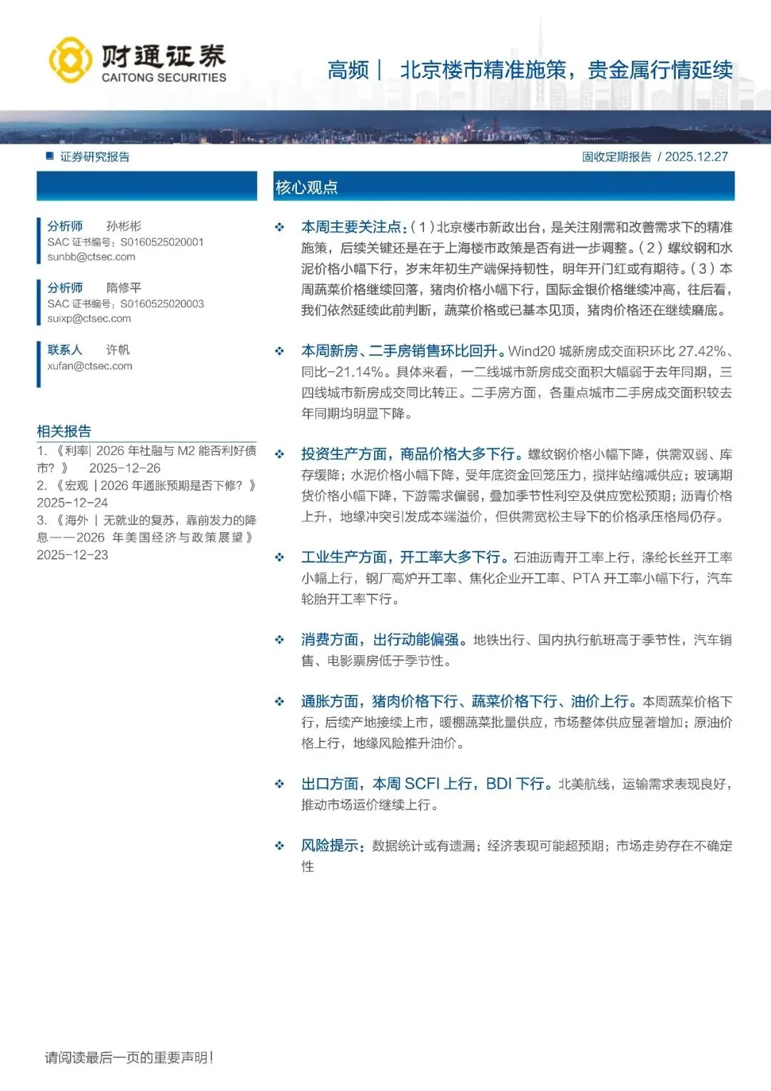 高频|北京楼市精准施策,贵金属行情延续-251227-财通证券-14页