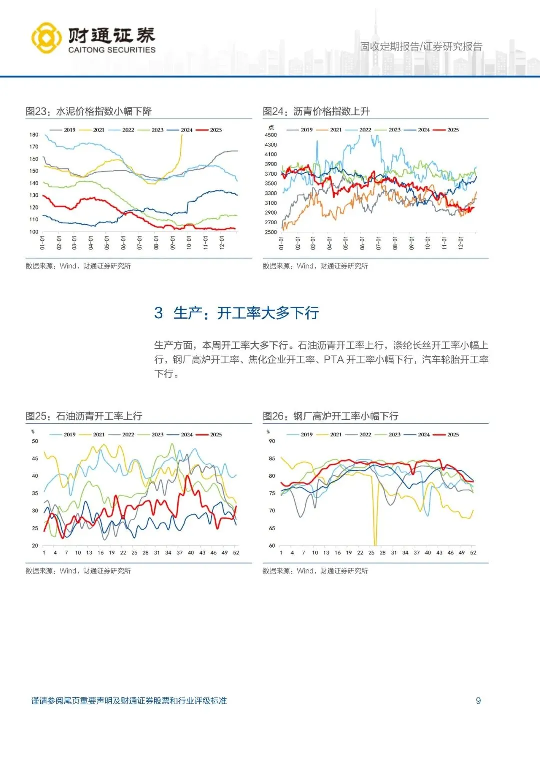(2)螺纹钢和水泥价格小幅下行,岁末年初生产端保持韧性,明年开门红或有期待。