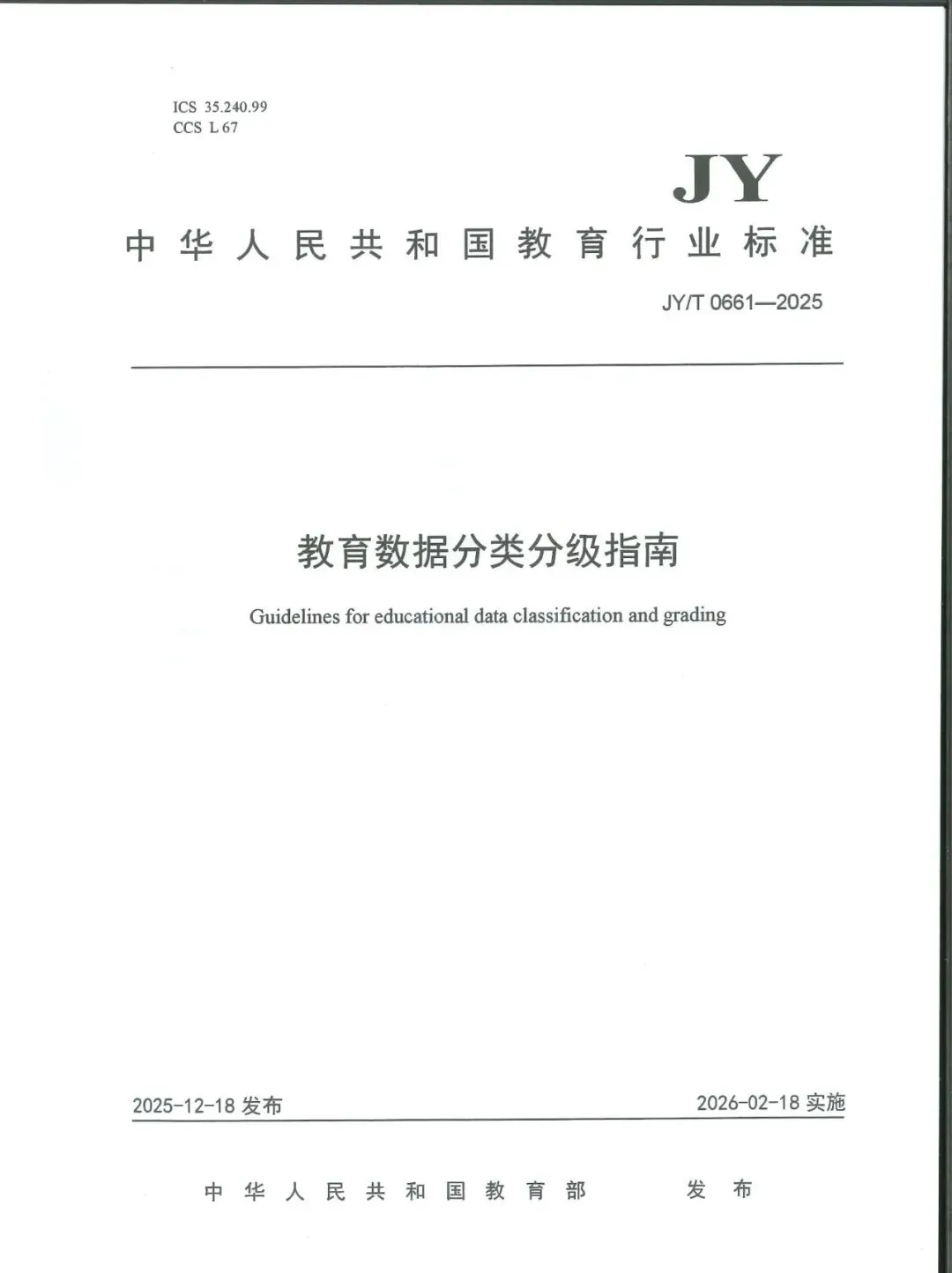 >教育部发布《教育数据分类分级指南》教育行业标准