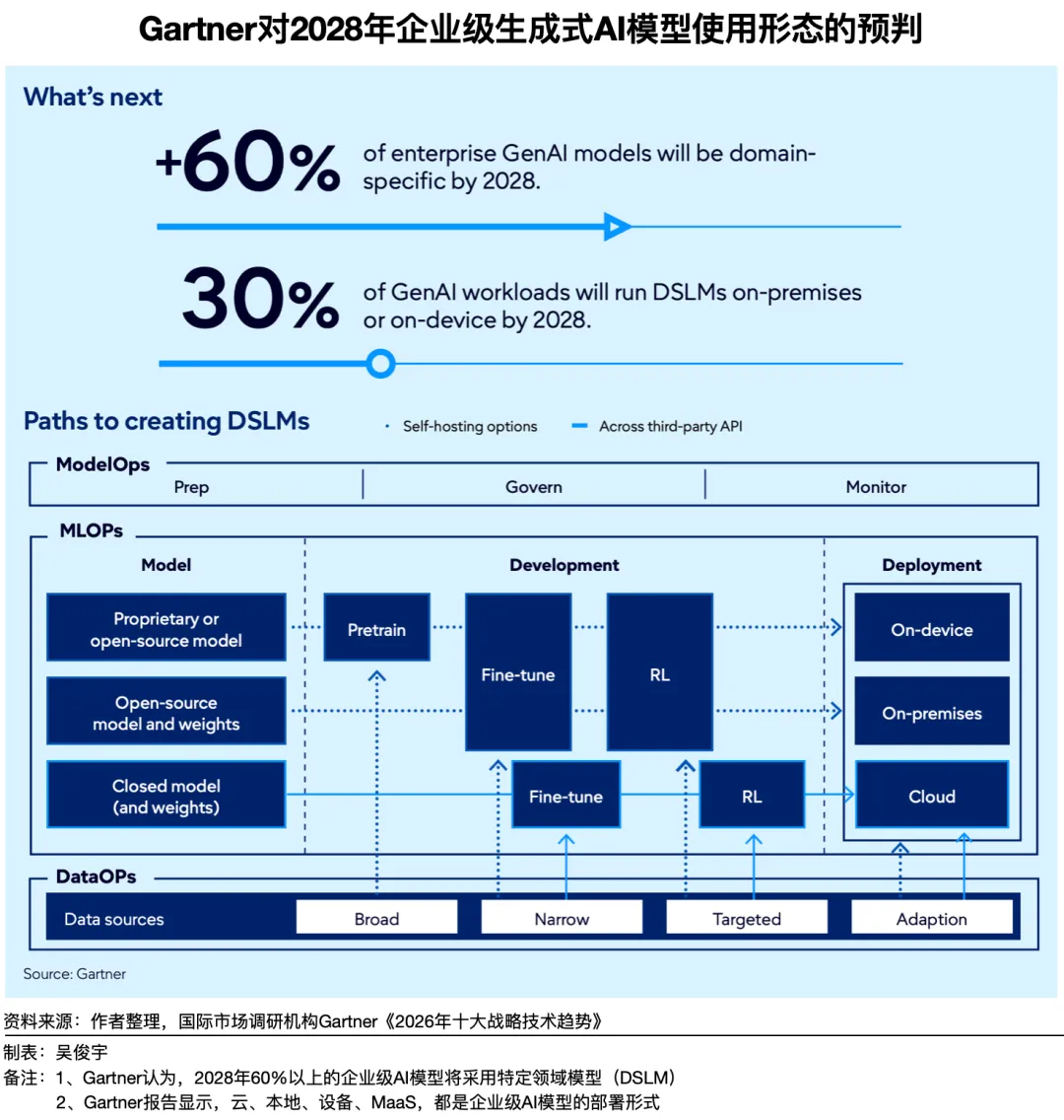 AI云仍在发展早期。一个高度复杂、仍在快速演进的技术体系中,单一指标一旦被赋予过多意义,往往也容易遮蔽一些更难被量化却更关键的事实。目前,使用AI算力的形式非常多样——通过公共云租赁GPU部署模型、采购GPU服务器进行模型私有化部署后进行后训练或强化学习、MaaS平台调用Token、端侧算力部署模型等都是主流方案。不同类型的企业通常倾向于采用不同的方案。比如,大型互联网公司通常习惯租用GPU云服务。政企行业(如金融、能源、制造等行业)和公共部门主要是采购GPU硬件进行私有化部署,AI创业公司和前沿开发者则是倾向于选择MaaS平台调用Token。在汽车、机器人、行业设备场景中,往往又是通过本地或边缘环境使用算力。此外,每一家企业的AI算力使用形态,都不是单一的。据我们了解,阿里云70%的企业客户,租用GPU云服务的同时,也通过MaaS平台调用Token。深度使用AI的企业,通常是多形态并存。某零售企业的数字化策略负责人对我们表示,他们在AI应用PMF(产品市场匹配)验证阶段,优先通过MaaS平台调用模型进行可行性测试,因为Token计费方式更灵活、试错成本更低。当AI应用进入大规模部署阶段后,倾向于租用GPU实例,因为长期成本结构更可控。此外,某国内云厂商的一位资深架构师也对我们表示,他走访客户发现,一些制造企业既采购GPU硬件进行私有化部署,也使用MaaS平台。其中,数据敏感型的业务使用本地算力,非敏感业务通过MaaS平台使用Token。他认为,Token计费灵活,这客观上加速了制造企业的上云进程。我们通过综合调研了解到,某社交媒体、某支付平台每年云支出(含计算、存储、网络、数据库、MaaS等公共云产品)高达数十亿乃至百亿元。这类头部互联网企业,2025年直接通过MaaS平台使用Token的费用,在整体云支出中的占比为极低的个位数。一位头部社交媒体相关人士2025年11月曾对我们表示,他所在企业的云支出仍以计算、存储、网络、数据库为主。AI算力相关投入以GPU云租赁、自建推理与训练集群等方式为主,MaaS产生的Token消耗少之又少。另一个重要事实是,中国市场可被统计到的Token消耗,主要集中在娱乐、对话等To C(面向消费者)的移动互联网场景。这类应用更容易通过MaaS调用模型,更容易在早期形成可观的Token规模。但更广阔的To B(面向企业级)领域,目前仍在AI应用早期,未来增长潜力更大。综上所述,真实Token使用场景,远比统计口径更复杂、多样。由于技术所限,不同机构很难全面掌握所有场景的Token使用情况。如果只看单一的统计数据,很容易得出彼此矛盾的结论。国际市场调研机构IDC 2025年数据显示,截至2025上半年,阿里云在中国大模型公有云服务(即Token市场)占比为27.0%,位居第二。阿里云在这里似乎是被低估的。OpenRouter是全球大模型API聚合平台,集成了全球主流模型,它反映了全球前沿开发者和AI创新企业的使用习惯。OpenRouter数据显示,2025年阿里Qwen系列模型全球Token消耗量长期位居全球第六,占比约为4%-7%。这在国内位居前列,超过IDC统计中的其他厂商。阿里云在这里似乎排名又更高。这种“矛盾”的成因是,阿里的通义千问、通义万相等都是开源模型。IDC无法统计到开源模型被使用的情况。OpenRouter主要覆盖通过聚合平台发生的调用Token,又难以统计云厂商自有MaaS平台内部、企业私有化部署、端侧推理以及真实总量。因此,无论采用哪种单一统计口径,都无法反映市场真实全貌。这些方式,都会低估中国AI落地的真实情况。国际市场调研机构Gartner在《2026年十大战略技术趋势》给了一个更全面的解释——2028年60%以上的企业级AI模型将采用特定领域模型(DSLM)(根据特定数据集训练的AI模型,准确性、合规性更高),它们可能同时通过云、本地、设备、MaaS部署。某中国云厂一位资深人士对我们总结称,前沿开发者、AI创新企业、企业PMF验证阶段习惯通过MaaS平台调用API使用Token,这部分数据最容易统计。公共云租赁GPU部署更适合互联网或其他大型公司大规模部署阶段的需求。通过私有化或本地部署(On-premise)算力,则符合金融、政府等数据合规要求的机构。端侧算力,适合于汽车、机器人等低延时场景需求。后三种Token消耗都难以被统计。在他看来,严格定义广义Token消耗量,要把MaaS平台、公共云GPU推理集群产生Token、私有化模型部署产生Token,设备端模型产生的Token全部统计在内。Token是企业IT采购重点吗?