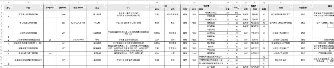最新氢能项目数据库:1.《国内绿氢落地项目统计汇总表》包含项目名称、风光储容量、业主名称、EPC、电解槽供货商、制氢电源供货商、消纳途径等,每月更新一次,49元/份。