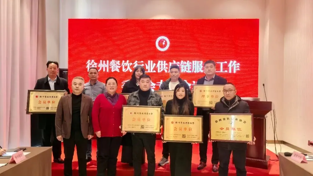 会议还公布了徐州餐饮行业供应链服务工作委员会新一届主席及班子成员名单,并为新入会的供应链品牌会员单位授牌。
