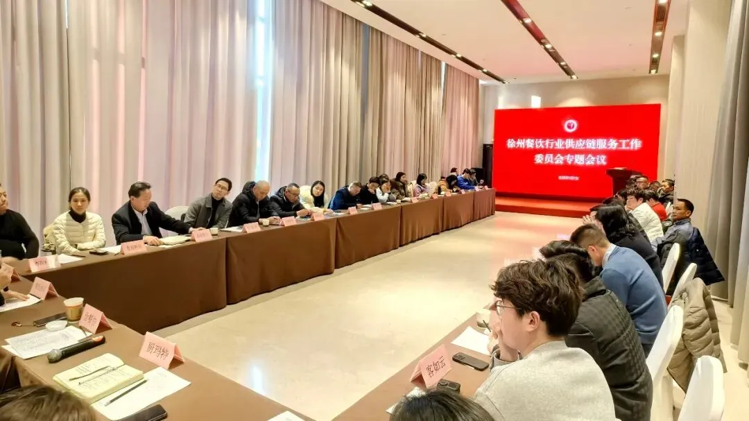 为进一步凝聚行业力量,规范供应链服务管理, 1月7日下午,徐州餐饮行业供应链服务工作委员会专题会议在徐州淮海郁锦香酒店召开。徐州餐饮行业协会党支部书记、会长王海燕,徐州餐饮行业协会党支部副书记史佩佩,徐州餐饮行业供应链服务工作委员会班子成员以及来自食材供应、厨房设备、物流配送、数字化服务等供应链服务工作委员会成员单位代表出席会议,会议由徐州餐饮行业协会秘书长吴盼盼主持。
