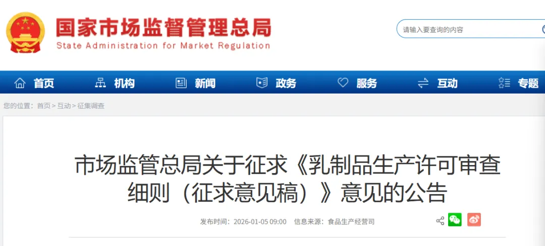 第一条 为了加强乳制品生产许可审查工作,依据《中华人民共和国食品安全法》《中华人民共和国食品安全法实施条例》《乳品质量安全监督管理条例》《食品生产许可管理办法》及相关食品安全国家标准等规定,制定《乳制品生产许可审查细则》(2026版)(以下简称《细则》)。