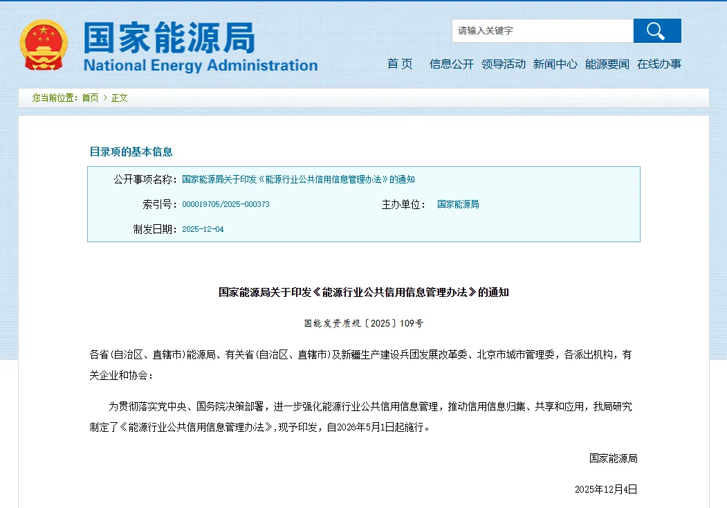 第四条 国家能源局负责统筹规划和协调推进能源行业公共信用信息管理工作,研究决策重大事项,牵头制定制度标准,负责建设能源行业信用信息系统及“信用能源”网站,监督管理能源行业公共信用信息归集共享、公示与应用。