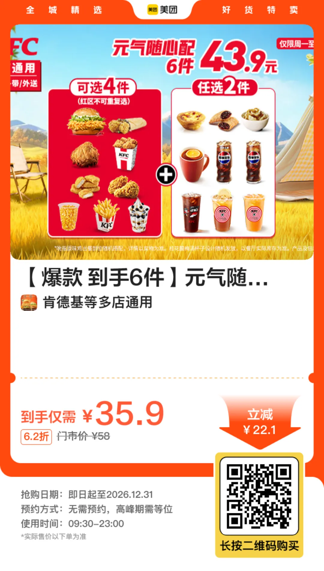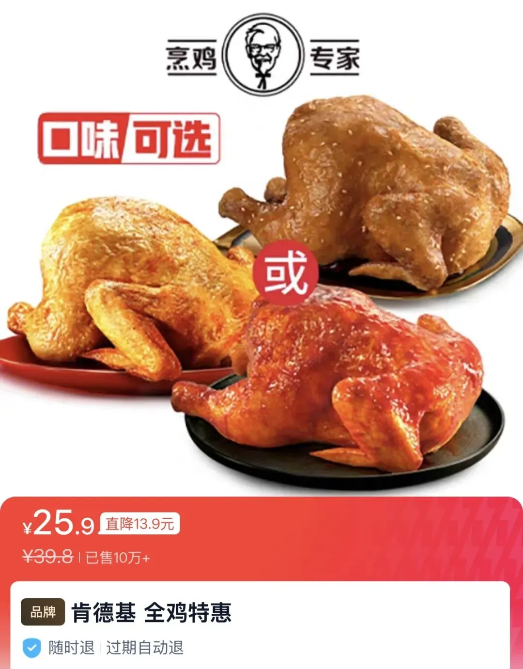 肯德基 全鸡3选1!限时25.9!(疯狂星期四都要29.9)