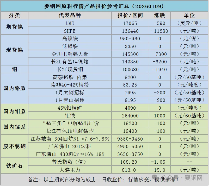 >【原料价格】原料价格变动