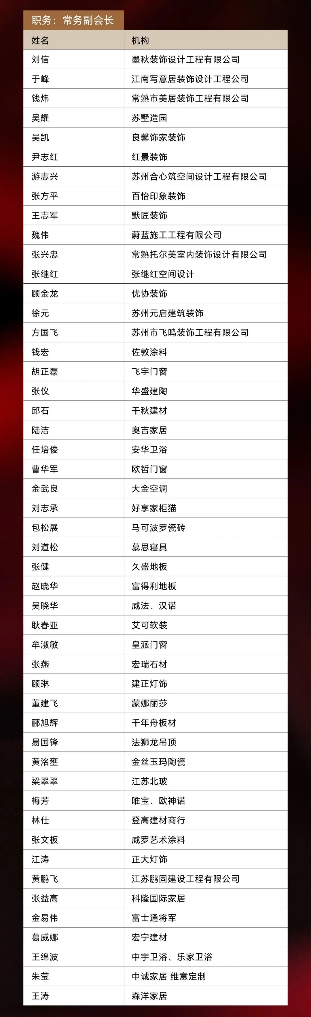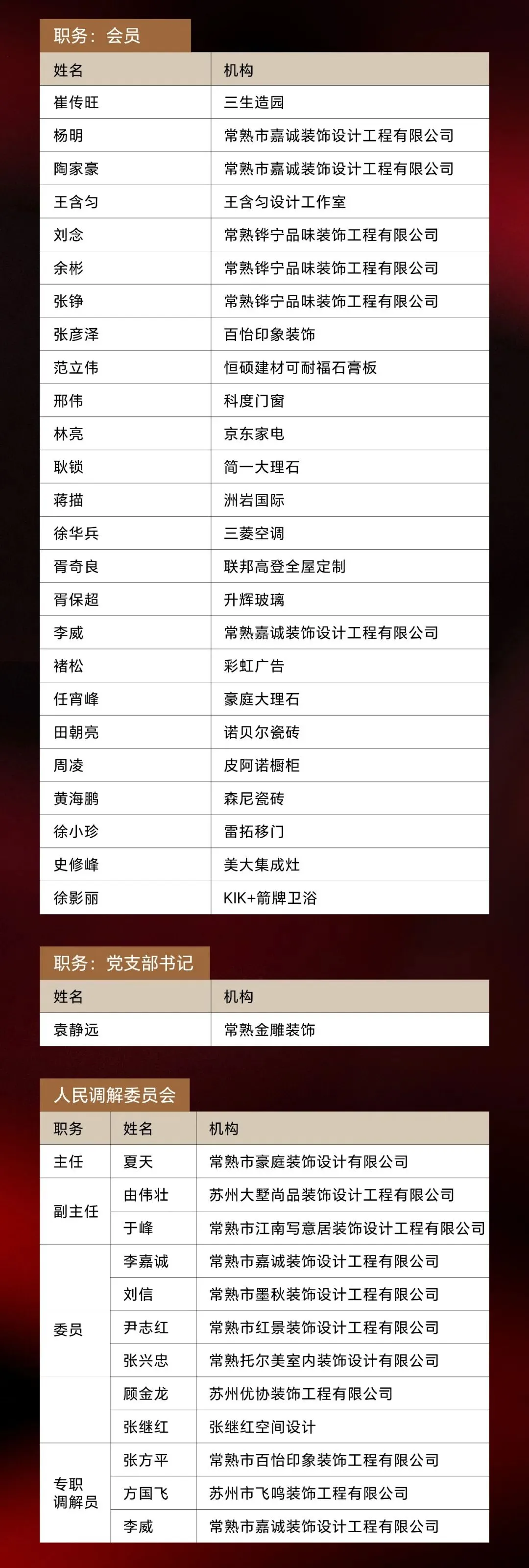 常熟市装饰设计行业协会(第四届)名单公示如下: