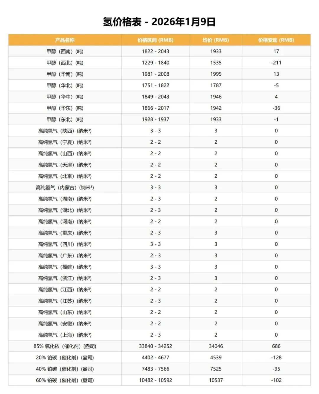 今日氢及相关市场延续分化行情。甲醇价格区域性涨跌互现,西南、华南等地价格上涨,而西北、华东等地价格则有所下跌。高纯氢气价格继续保持全国性稳定。催化剂产品走势分化加剧,氧化钛价格继续大幅上涨,而多种铂碳催化剂价格则普遍下跌。市场整体呈现强烈的结构性特征,部分品种波动显著。钒荣网旨在汇聚钒钛产业链上下游企业,钒荣网将通过资讯浏览推送、“双碳”产业、在线交易推广、技术成果转让、产业金融、钒产业指数、行业标准会议会展、咨询服务数据报告等功能板块,为钒储能上下游企业提供商机对接、行业资讯、产业金融、市场拓展、名企研学、品牌宣传、数据服务、专属顾问等服务。