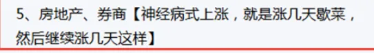 其中房地产,券商我说了,就是发疯式上涨,现在懂了什么叫发疯式上涨没有?