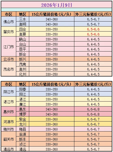 1月10日全国生猪价格——大部平稳,小幅上涨!