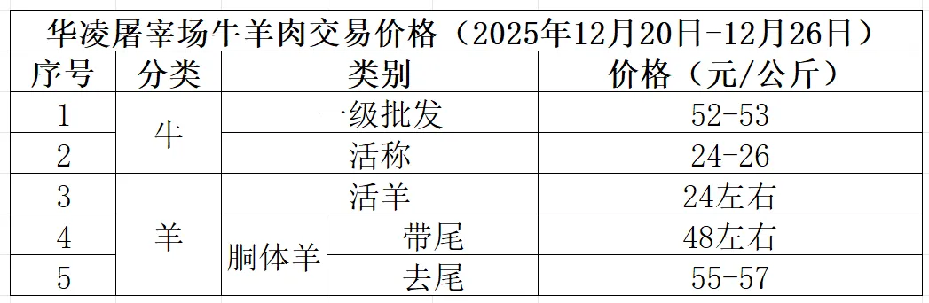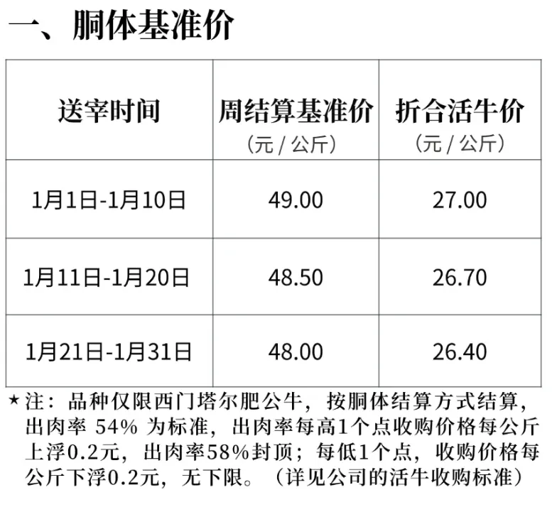 12月27日-1月3日牛市牛价: