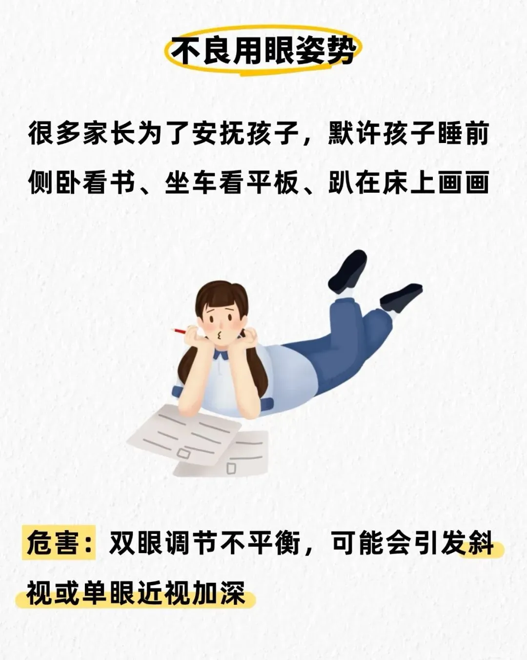 很多家长为了安抚孩子,默许孩子睡前侧卧看书📖,坐车看平板,趴在床上画画🎨