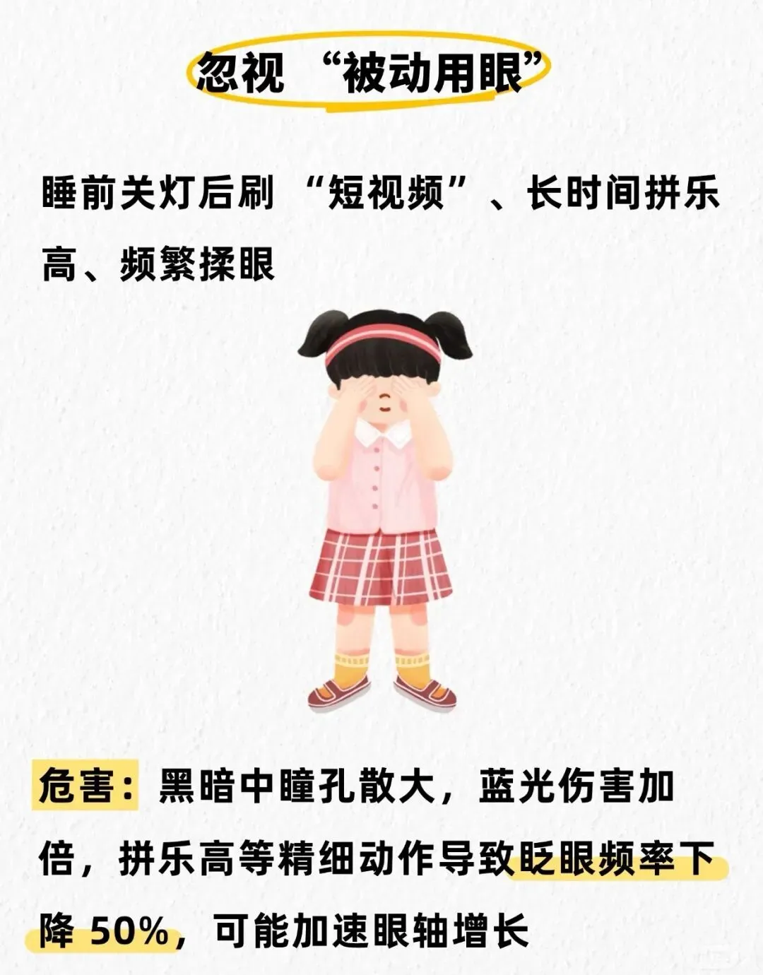 ⚠️危害:黑暗中瞳孔散大,蓝光伤害加倍,拼乐高等精细动作导致眨眼频率下降📉50% ,可能加速眼轴增长