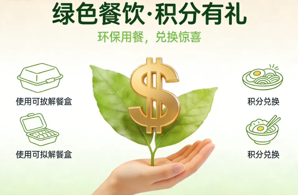 场景3(外卖):“选择‘无需餐具’,积分双倍,累积可兑换免配送费权益”(在外卖场景中差异化竞争)