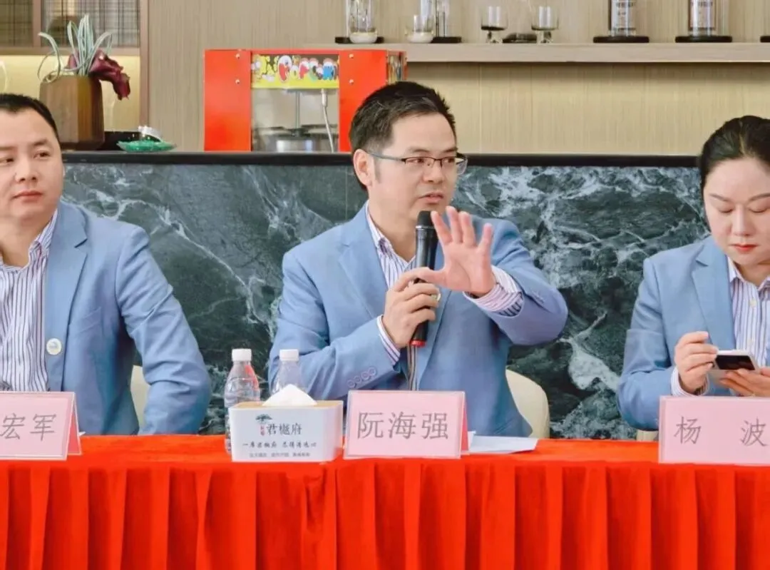 在恒福君樾府营销中心,恒福地产常务副总阮海强代表公司对青商同仁的到来表示热烈欢迎。谈到项目始终秉持“匠心筑家,品质立企”的理念,深耕人居赛道,不仅致力于打造匹配城市精英的理想居所,更希望以项目为纽带,联动各界力量共促城市发展。
