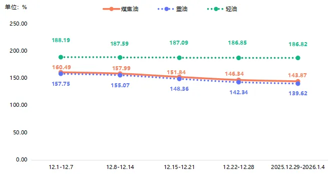 细分产品中,重油、轻油价格指数延续下滑走势,其中轻油价格指数波动幅度较小,而重油价格指数近两期降幅呈收窄态势。