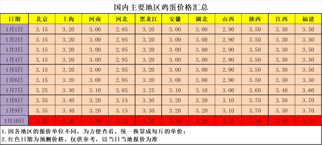 鸡蛋预测价格仅供参考,实际价格以当地当日的报价为准。