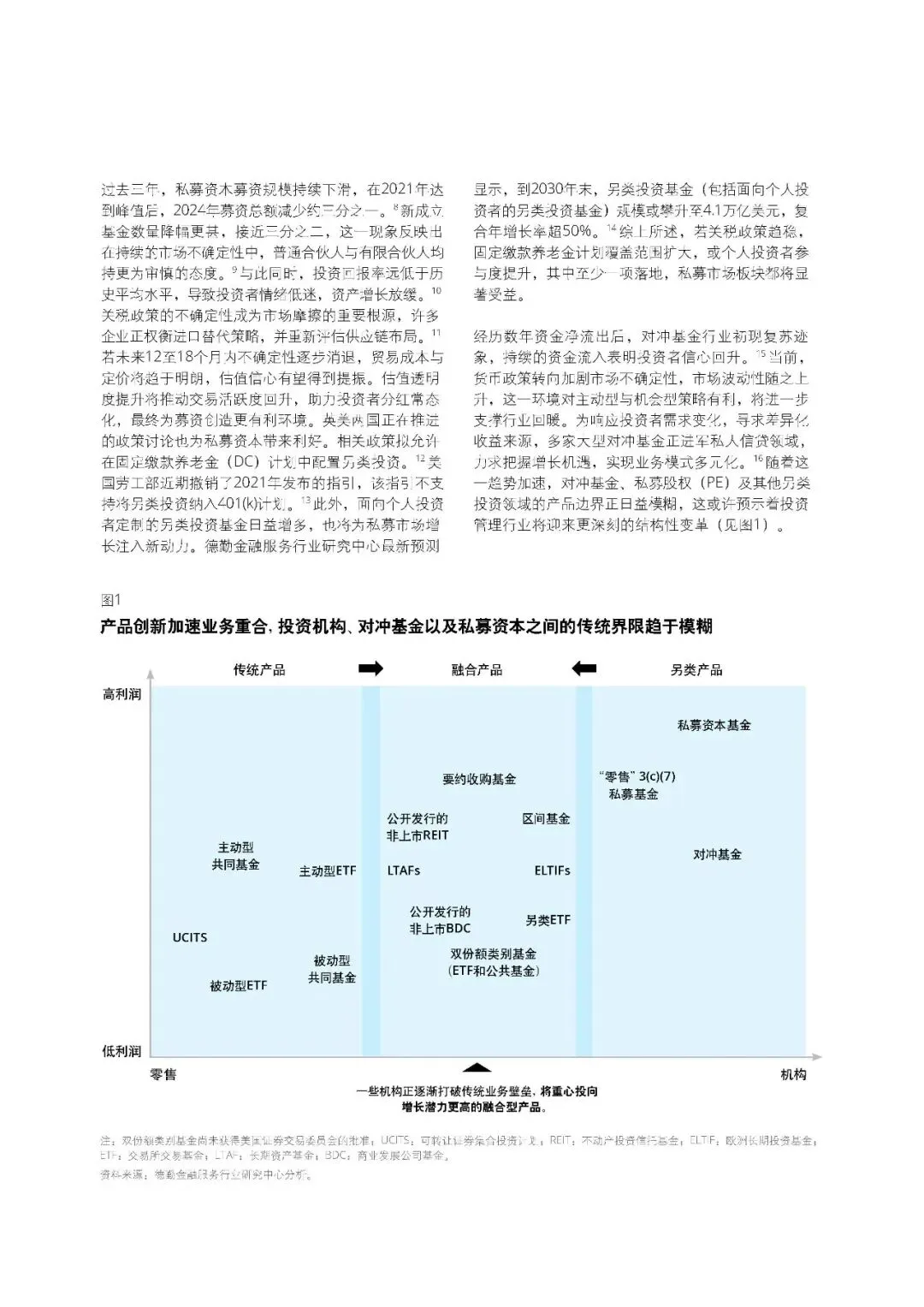 监管环境的变化为投资管理行业带来了新的机遇。监管机构正在逐步放宽对私募市场的准入限制,推动产品创新。美国证券交易委员会(SEC)取消了“封闭式基金将超过15%资产投向私募产品”的限制,这使得基金管理机构能够通过“半流动性基金”的形式,向个人投资者提供私募投资渠道。这一政策变化为机构提供了更大的灵活性,也为私募市场的发展注入了新的动力。