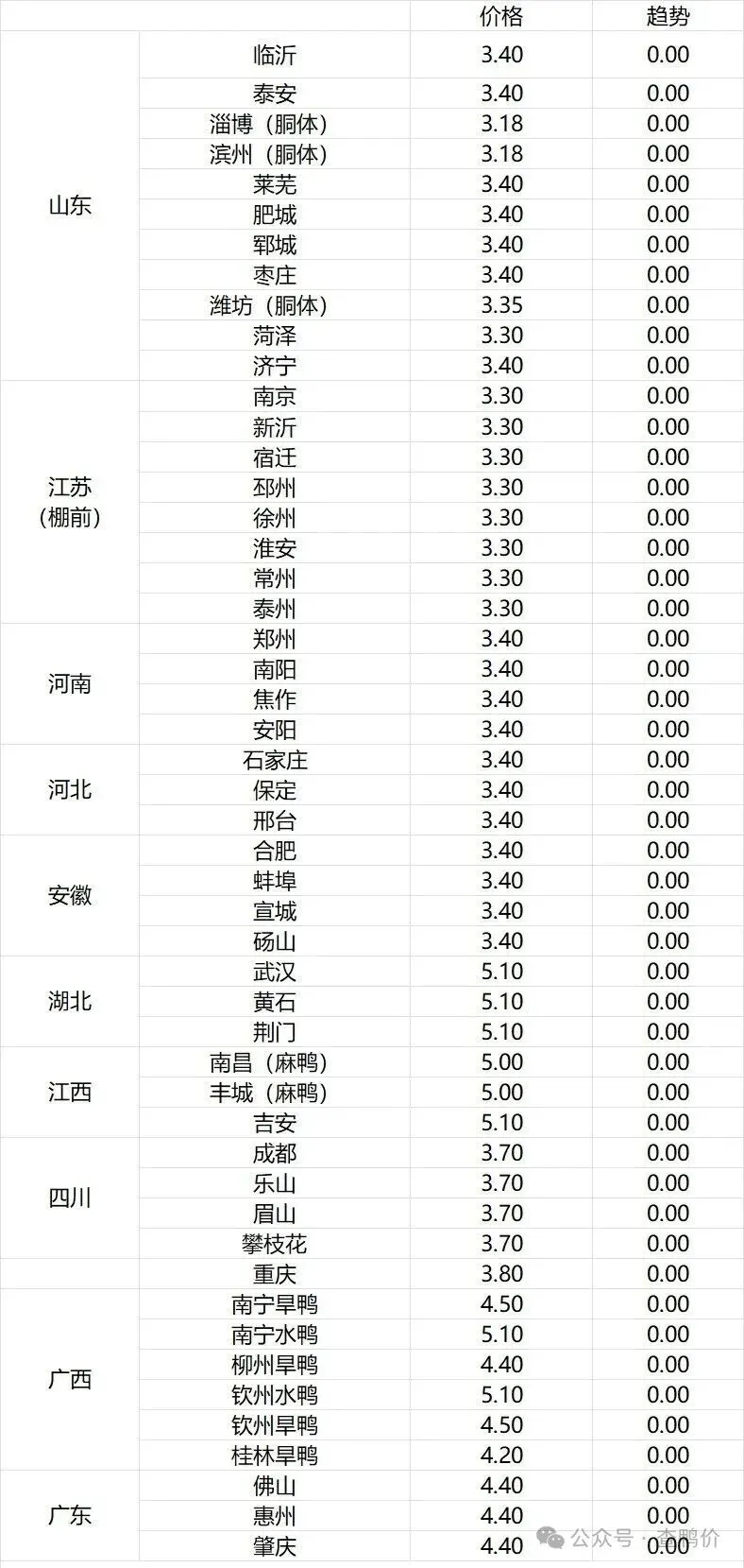 微评:鸭苗报价稳定。昨日二报下跌,今日实际报稳。(注:南方只报当天价格)整体交投情绪平淡。根据产品、养殖成本及鸭苗现状分析,预计近期鸭苗价格呈稳中微调趋势。种蛋报价涨1毛。温馨提示:该价格为主流厂家报价,实际销售价格以成交价格为准,价格仅供参考。