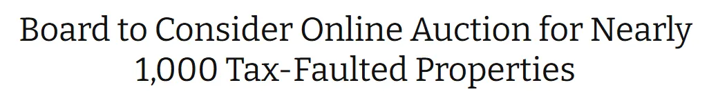 财政局再次提议与拍卖平台Bid4Assets网站合作,专门针对因未缴纳房产税而被没收的房屋及空地开展纯网络拍卖。