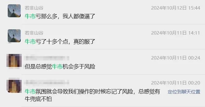 牛市在924之前,我也没经历过,经历过以后,得出的结论就是不要反复横跳,延长持股时间,多格局,聚焦主线,做两头,要么绝对的高,要么绝对的低,高位人气高,涨得会非常厉害,低位位置低,会有轮动补涨的机会,新分支第一时间上车,都会有不错的收益。