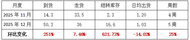 2025年12月份北部湾(钦州港及防城港)内贸散玉米到货50.3万吨,较上月增加36万吨;走货36万吨,较上月增加2.5万吨;结转库存16.6万吨,较上月增加14.3万吨;日均出货1万吨,较上月日均出货减少0.2万吨。(详见表1)