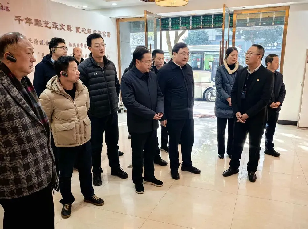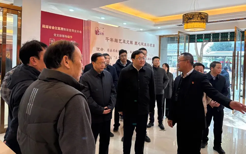 1 月 9 日,全省行业协会商会党建工作暨联系点工作推进(交流)会在鹰潭召开,会议期间,省委社会工作部副部长、省委两新工委副书记孙鑫率参会人员前往鹰潭市余江区雕刻家居同业商会开展现场教学观摩。鹰潭市人民政府副市长、党组成员胡春平、市委社工部长周荣光陪同参观,余江区委常委组织部长艾雯、余江区政府党组成员、余江工业园区党工委书记杨旭参加了现场接待。