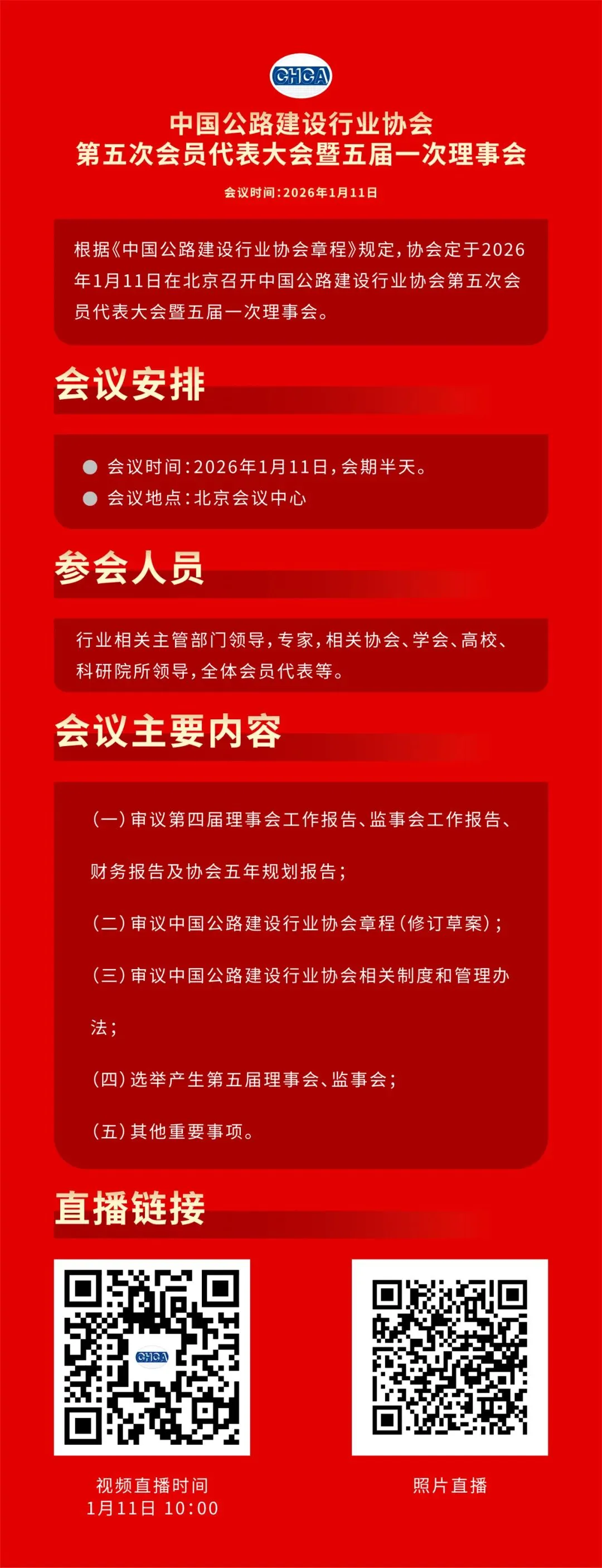 直播预告丨中国公路建设行业协会第五次会员代表大会暨五届一次理事会