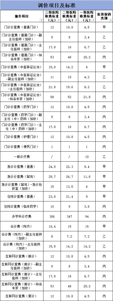 门诊医疗服务价格调整通知