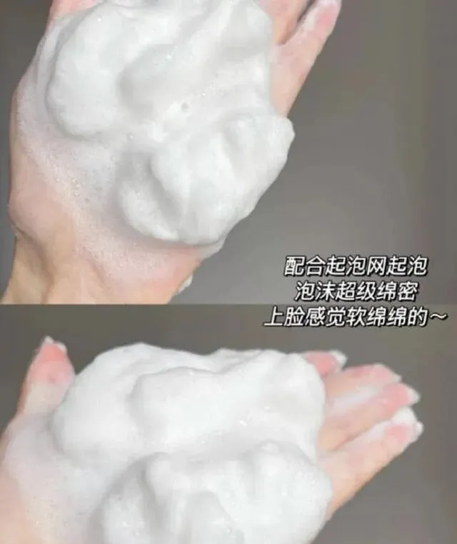 配起泡网打出来的泡沫超绵密 , 往脸上一按 , 软软的 , 完全不刺激 , 洗完也不紧绑绑的那种感觉。