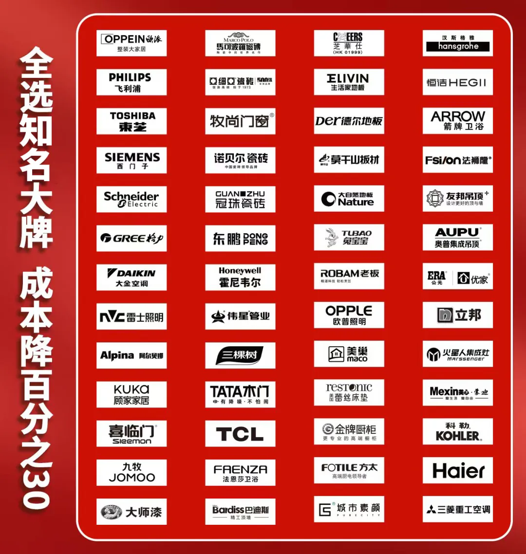整体装修成本最高可节省约30%,让高品质、环保、智能的居家配置不再因预算而妥协,真正实现“好品牌,不用贵”。