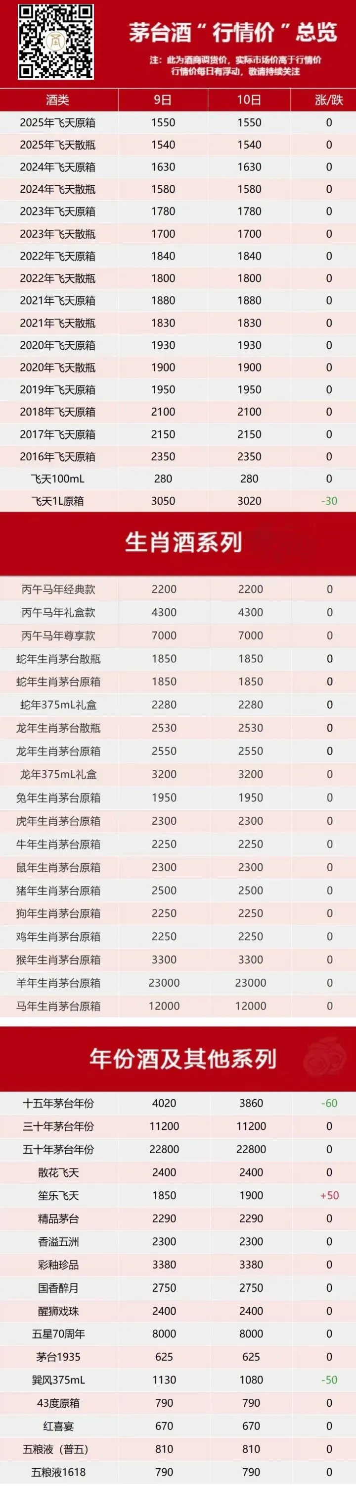 1月10日最新行情价▼行情价是指酒商之间的调货价,不同地方调货价有几十块的差异属正常现象。批发价/零售价=行情价+运营费用+仓储费用+物流费用+合理利润