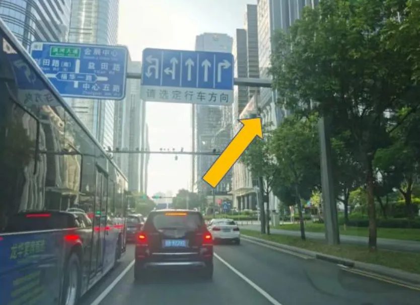 金田路与福华一楼路口交汇处右侧为酒店行车入口