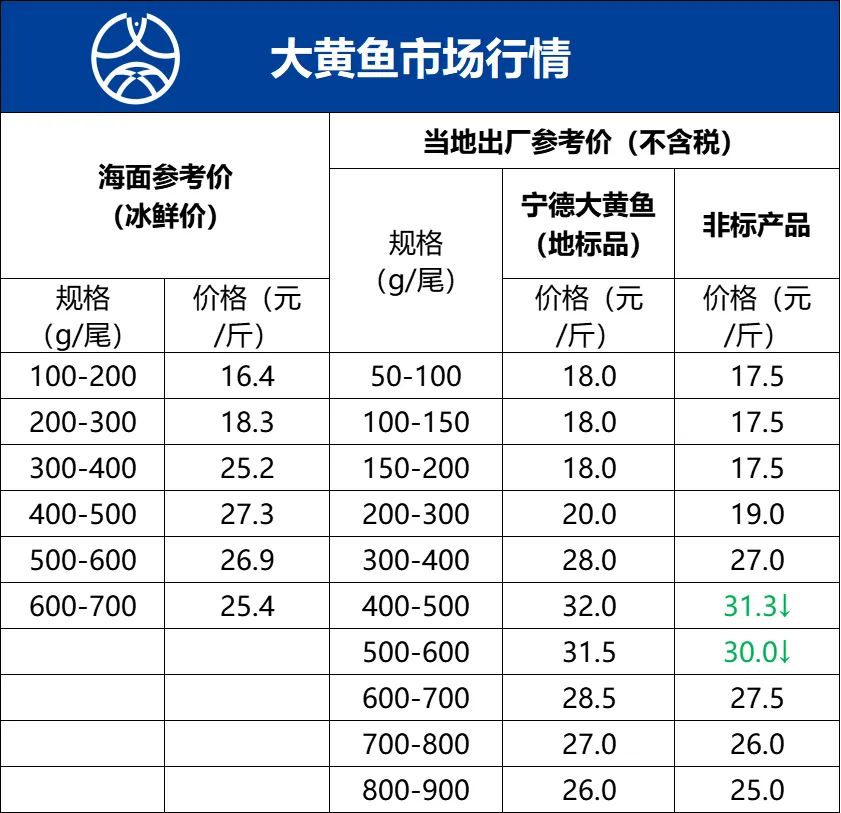 宁德地区大黄鱼海面收购价(冰鲜价)和