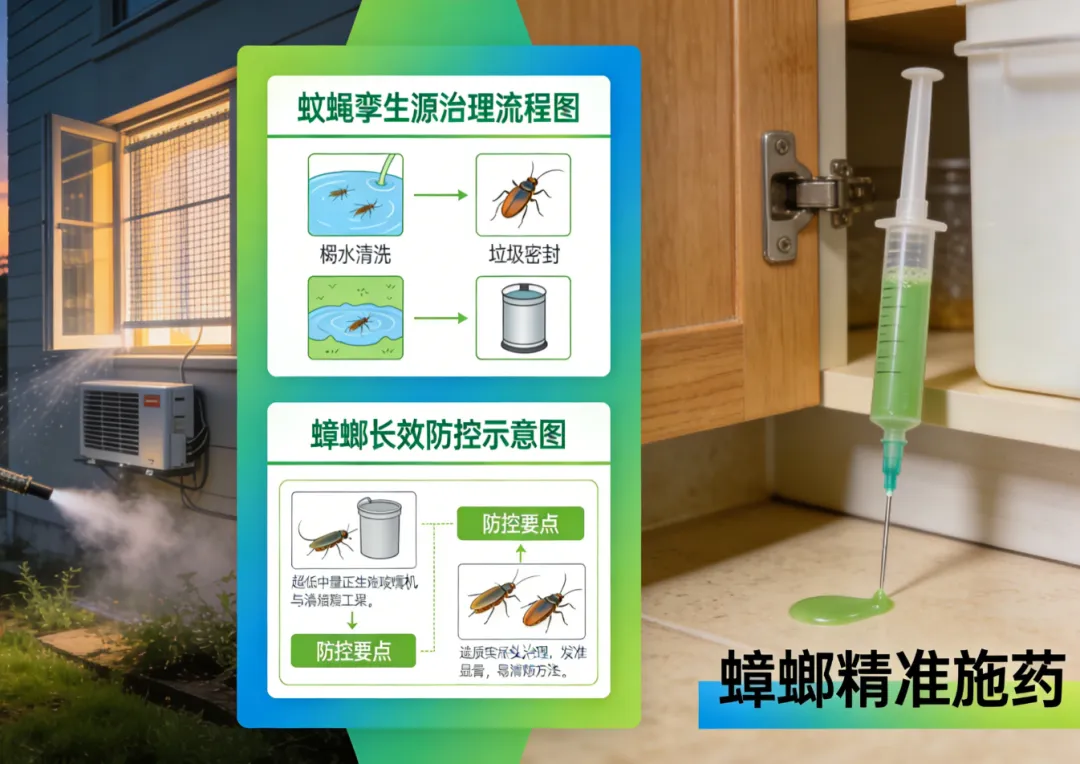 (二)飞虫(蚊、蝇)防治:源头治理,立体阻隔