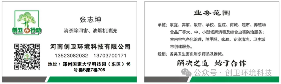 特重点场所虫害防控专业性强、要求高,自行处理难以兼顾效果与合规性。河南创卫环境科技---- 病媒生物防制消杀公司,专注于重点场所病媒防制,为餐饮、食品加工、商超、写字楼等提供定制化服务: