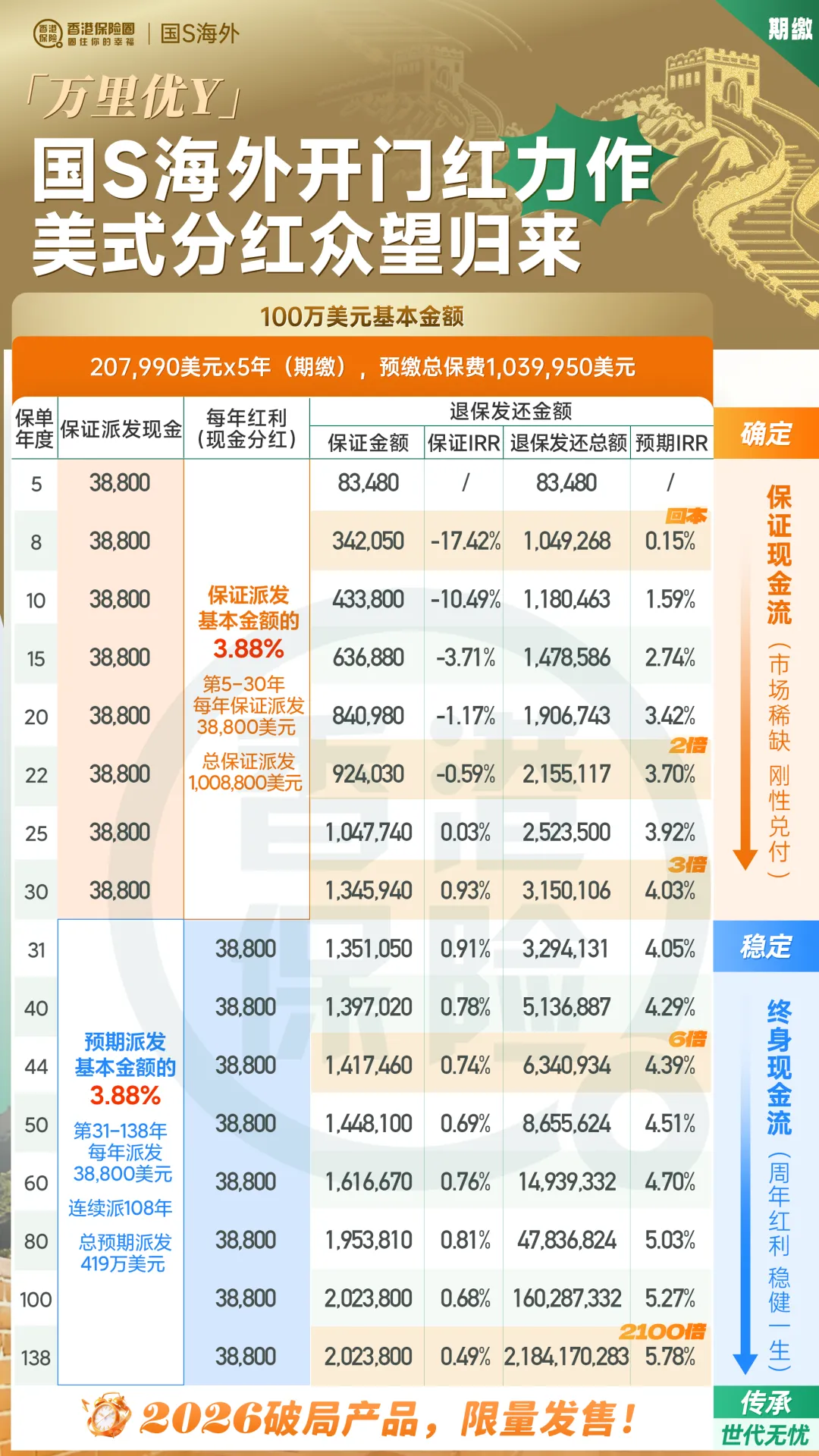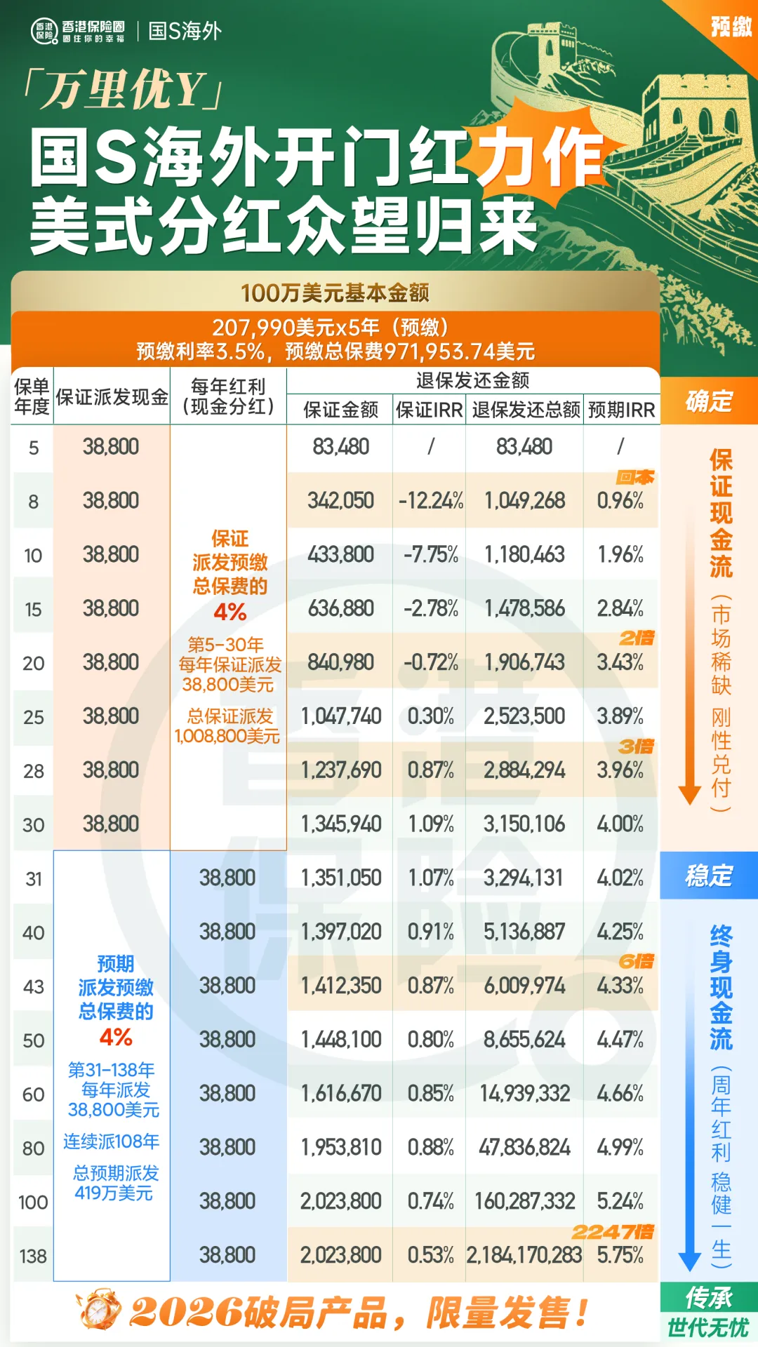 2026开年力作,国S海外新产品「万L优悠」重磅上市,美式分红众望归来!