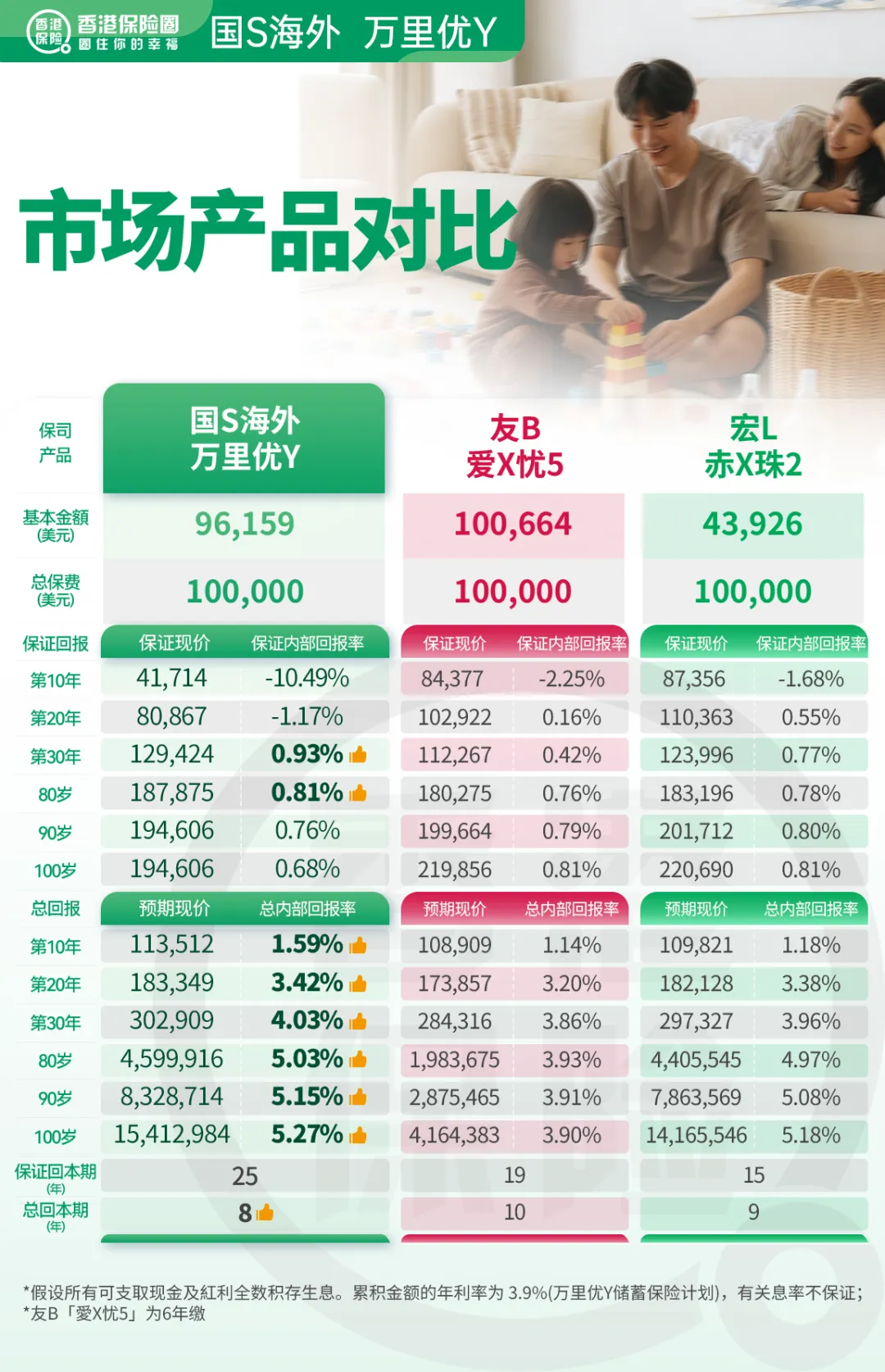 「万L优悠」美式分红储蓄险,流动性(回本速度)、安全性(保证回报)和收益性(长期回报)三者兼得,都领先于市场同类产品。