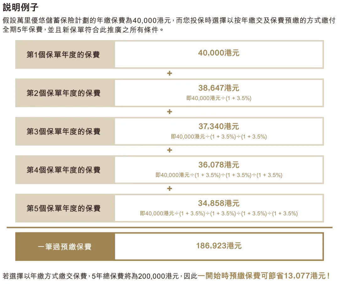 以100万美元基本金额为例,年缴需支付总保费约104万美元,而预缴仅需约97万美元,直接节省近7万美元。更少的投入,获得相同的保障。